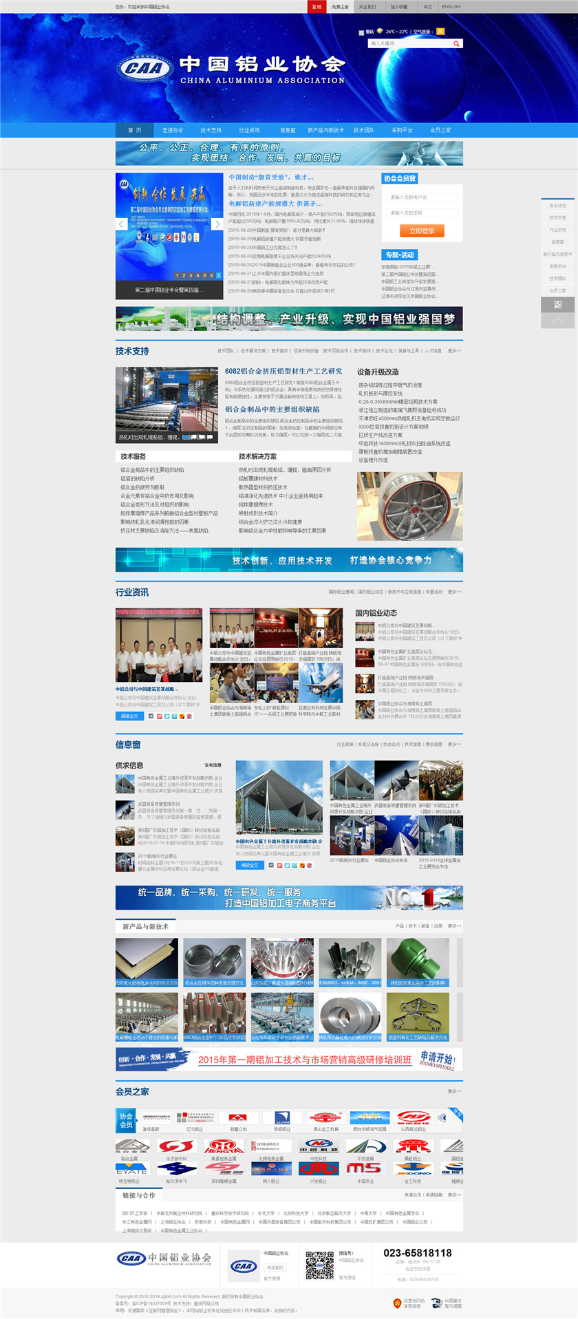 Project Description 中国铝业协会是由中国国内主要从事铝合金铸造、板、带、箔、管、棒、型材、锻件等企业组成的行业协会组织,协会由国内具有一定规模和影响力的企业发起,已有三百多家会员企业,目前还有很多企业踊跃希望加入,协会现有会员企业年销售额1000多亿元人民币,协会会员企业分布在国内华东、华南、西南、环渤海、东北、胶东半岛等中国经济活跃地区;产品涵盖航空航天、兵器装... Official website address 大连http://www.caa2014.com I want to share